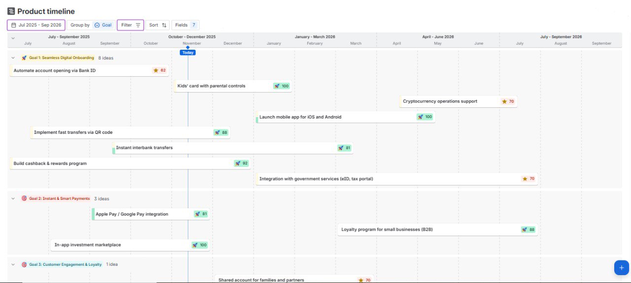 Використовуйте Project Roadmap для синхронізації команд. Вона стає ключовим інструментом для планування релізів, моніторингу прогресу та забезпечення відповідності фактичного темпу загальному проєктному плану.