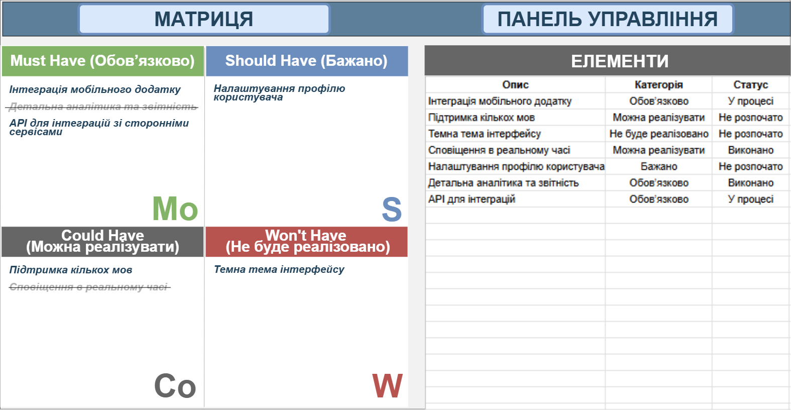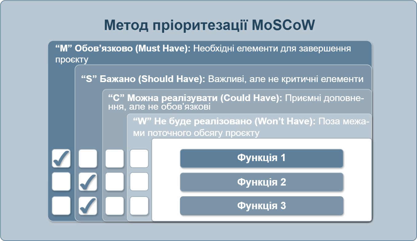 Крок 3: Приклад розподілу функціоналу за методом MoSCoW
