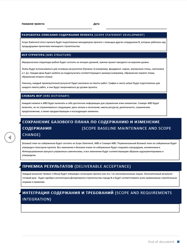 Шаблон плану управління змістом включає таку типову структуру: